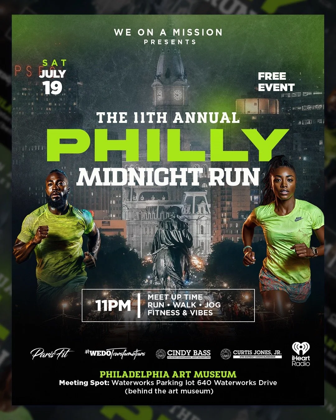 Meet-up with fellow runners at the Oval before the Philly Midnight Run.